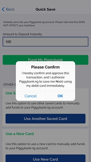 "Piggyvest has made saving easy for me and without stress. I also love the option of the quick save which helps you to still save even when you miss your set date, it also gives you interest which a normal bank account would not give to you. Thanks...read more"Posted on Tuesday, 18th of February 2020 by 19:02 PM